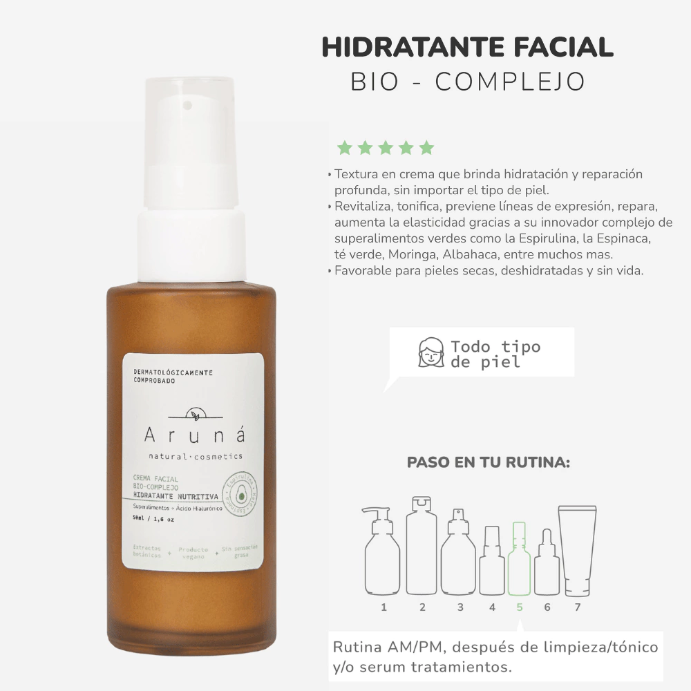 Recupera la hidratación natural y el balance de tu piel con esta crema ligera, nutritiva y formulada con bio complejos botánicos de Aruna. Hecha en Colombia con amor y conciencia.