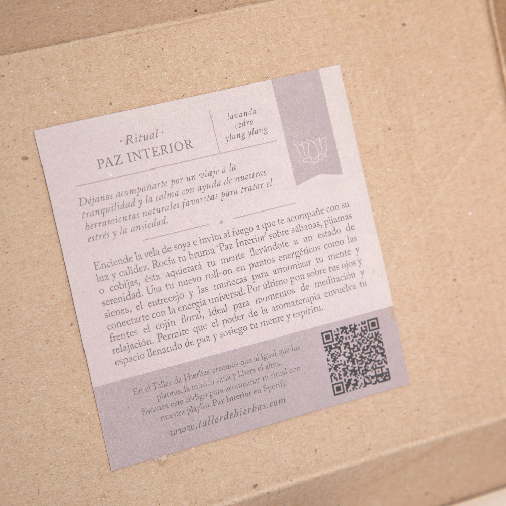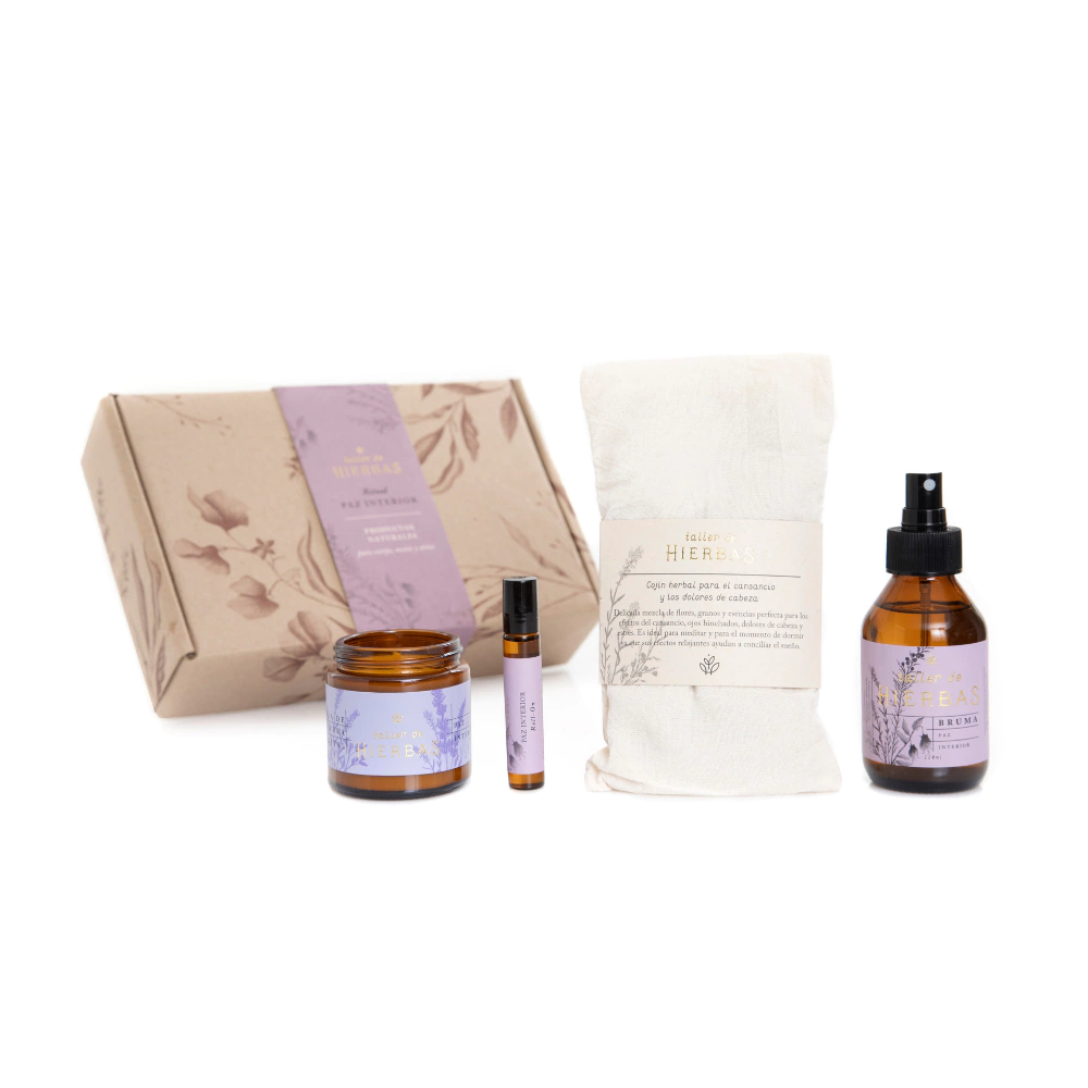 El Ritual Paz Interior de 🌿 Taller de Hierbas es una experiencia completa de armonía y relajación. Diseñado para ayudarte a calmar la mente, disminuir el estrés y conciliar el sueño, combina productos naturales de aromaterapia que favorecen la serenidad y la introspección.