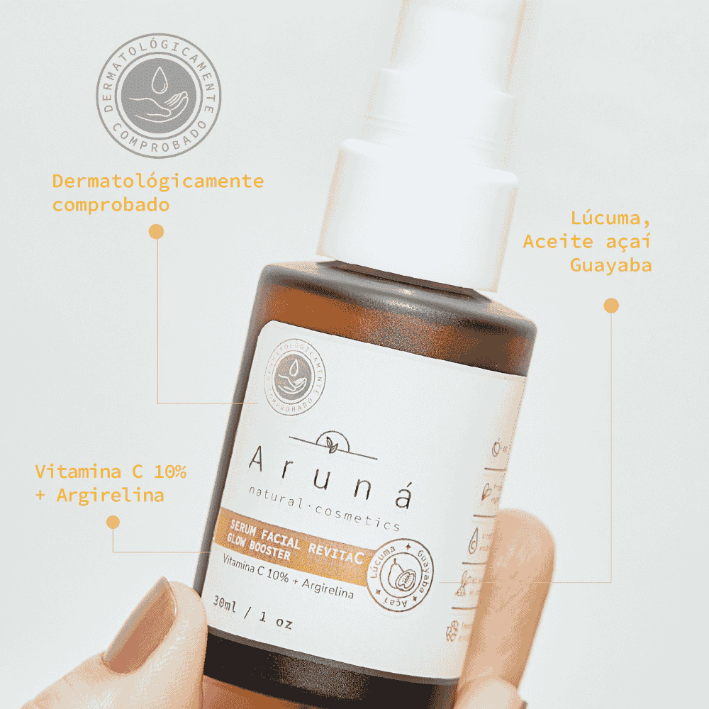 Logra una piel más luminosa, uniforme y protegida con el Sérum RevitaC de Vitamina C Natural Aruna. Hecho en Colombia, formulado con ingredientes botánicos y conciencia.